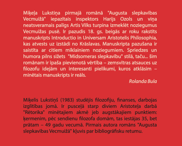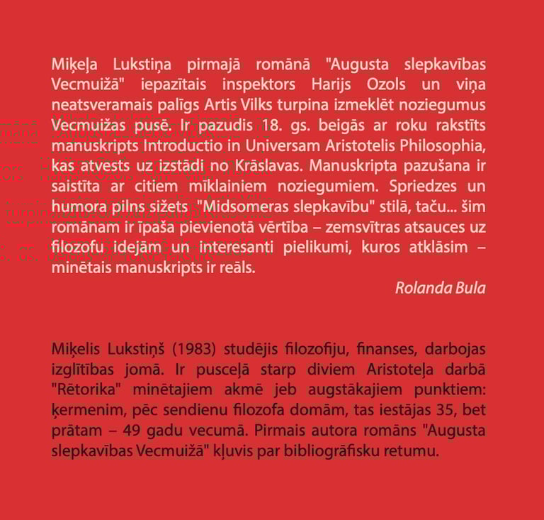 No izstādes bibliotēkā nozog senu, ļoti vērtīgu manuskriptu. Zinātnieku rīkotā pasākumā notiek asiņains noziegums. Inspektoram Ozolam jāšķetina abas lietas, jāierauga sakarības starp seniem un jauniem notikumiem, vecām krimināllietām un veciem tekstiem, un pat notikušā iespējamo saistību ar gleznu Berlīnes mākslas galerijā.